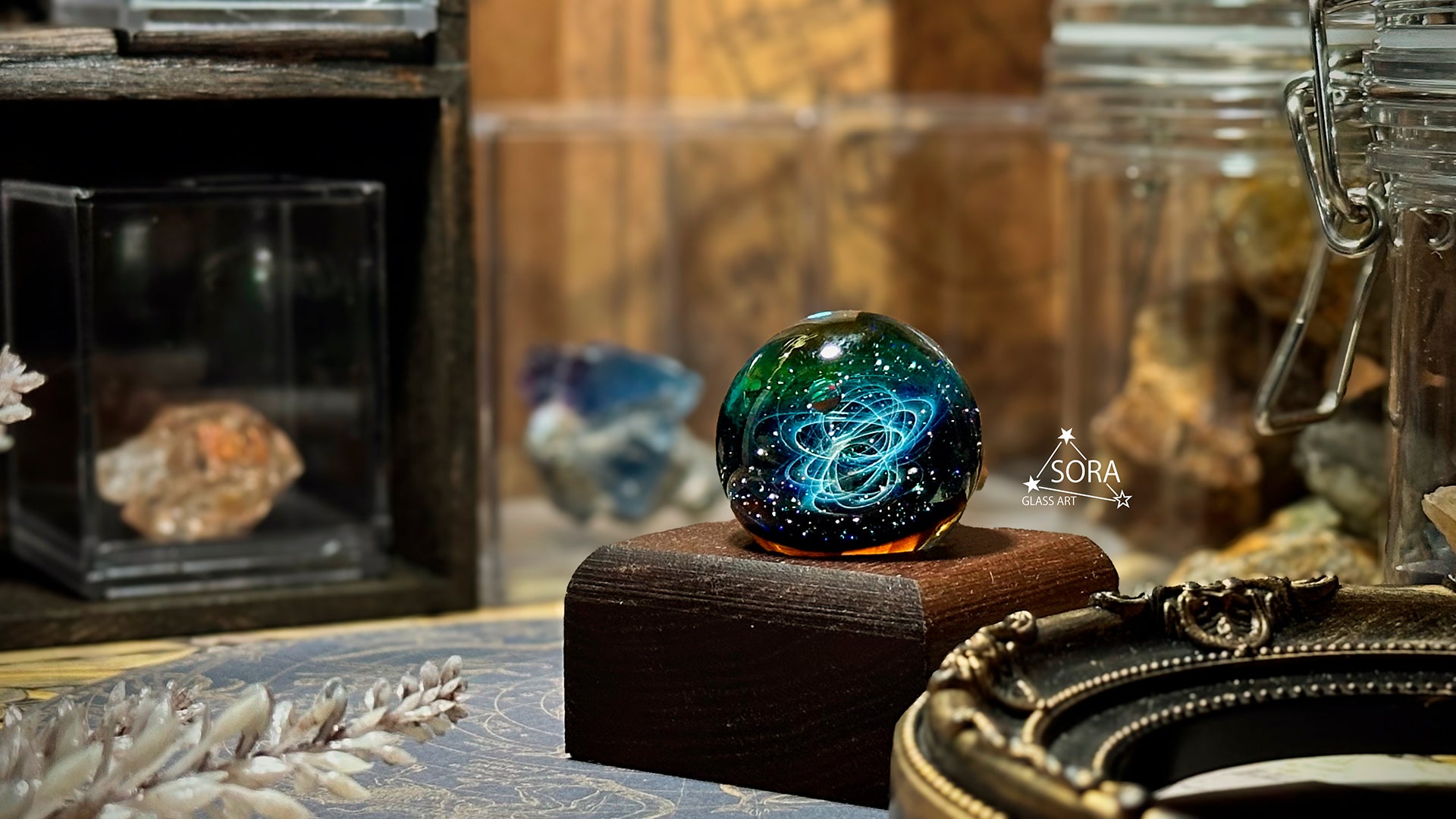直径30mm以内の小さなガラスの玉。 卓上インテリアとしてあなたの書斎や机に飾れば、いつでも宇宙に思いを馳せることができます。
