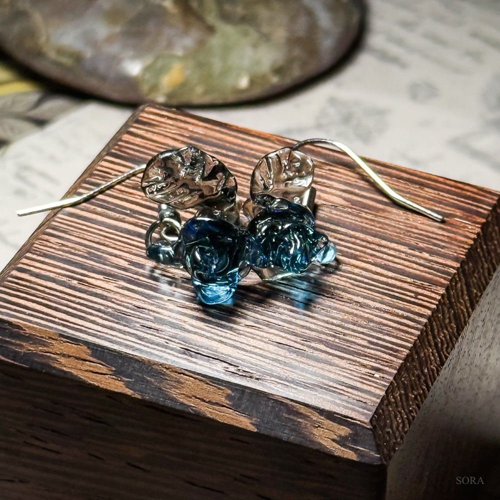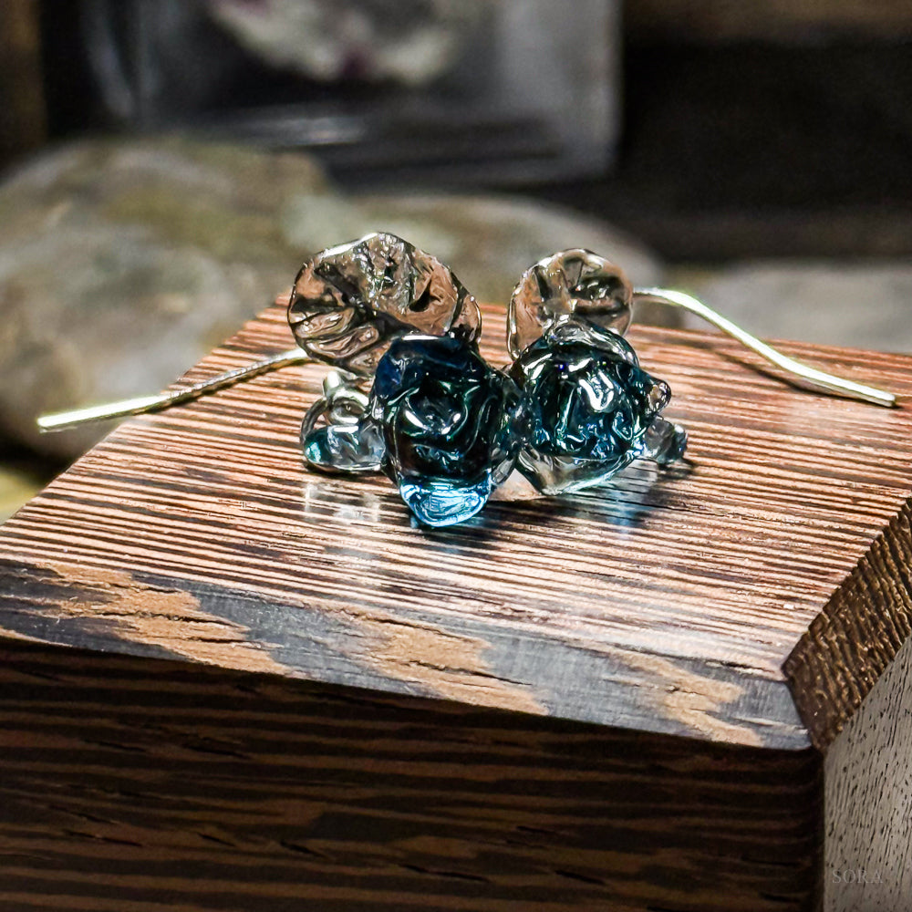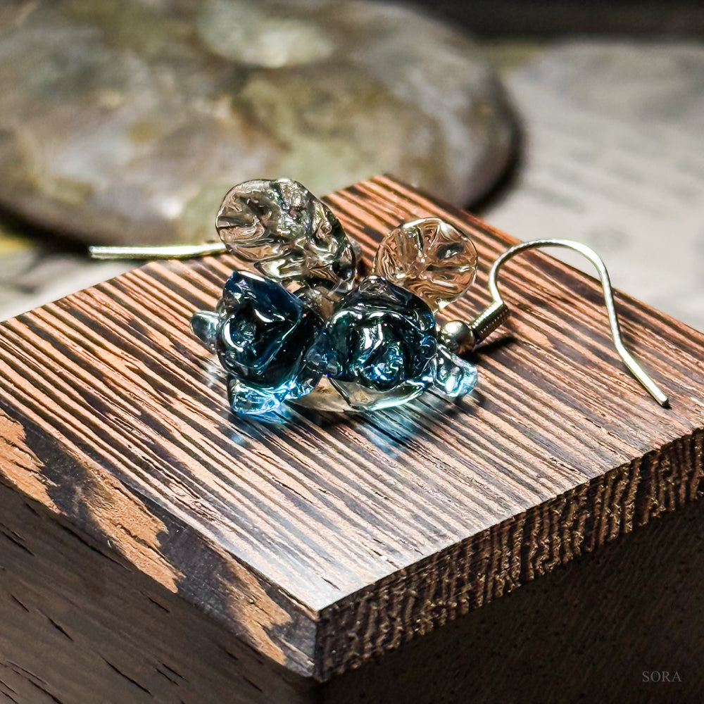 薔薇の青いピアス ステンレスフックタイプPSS20251017-1