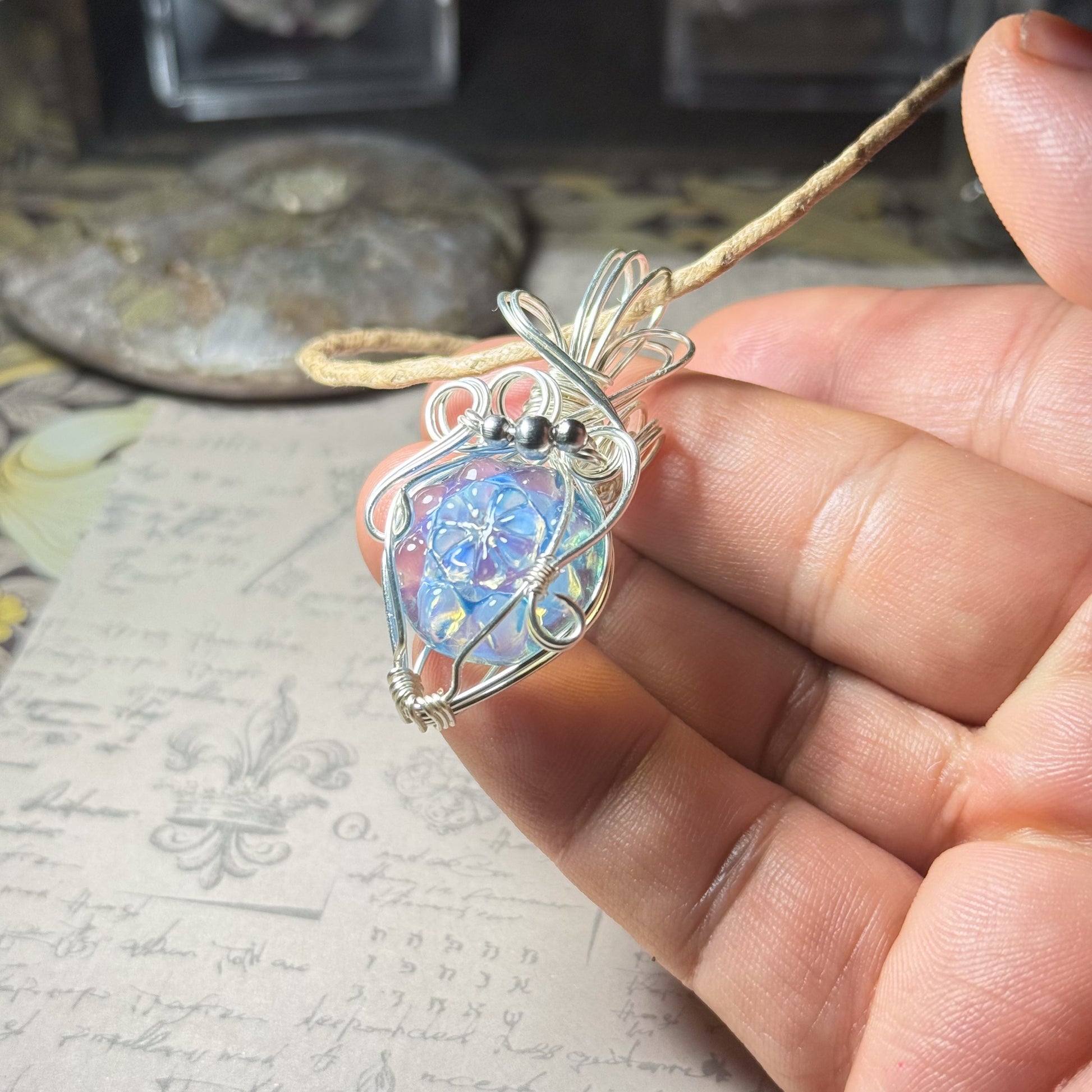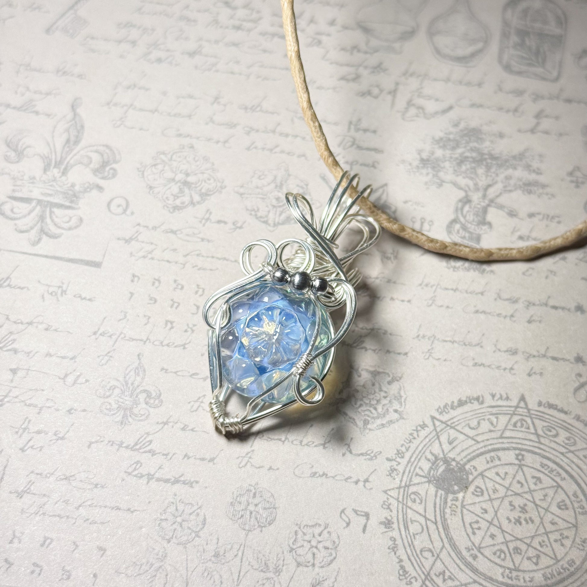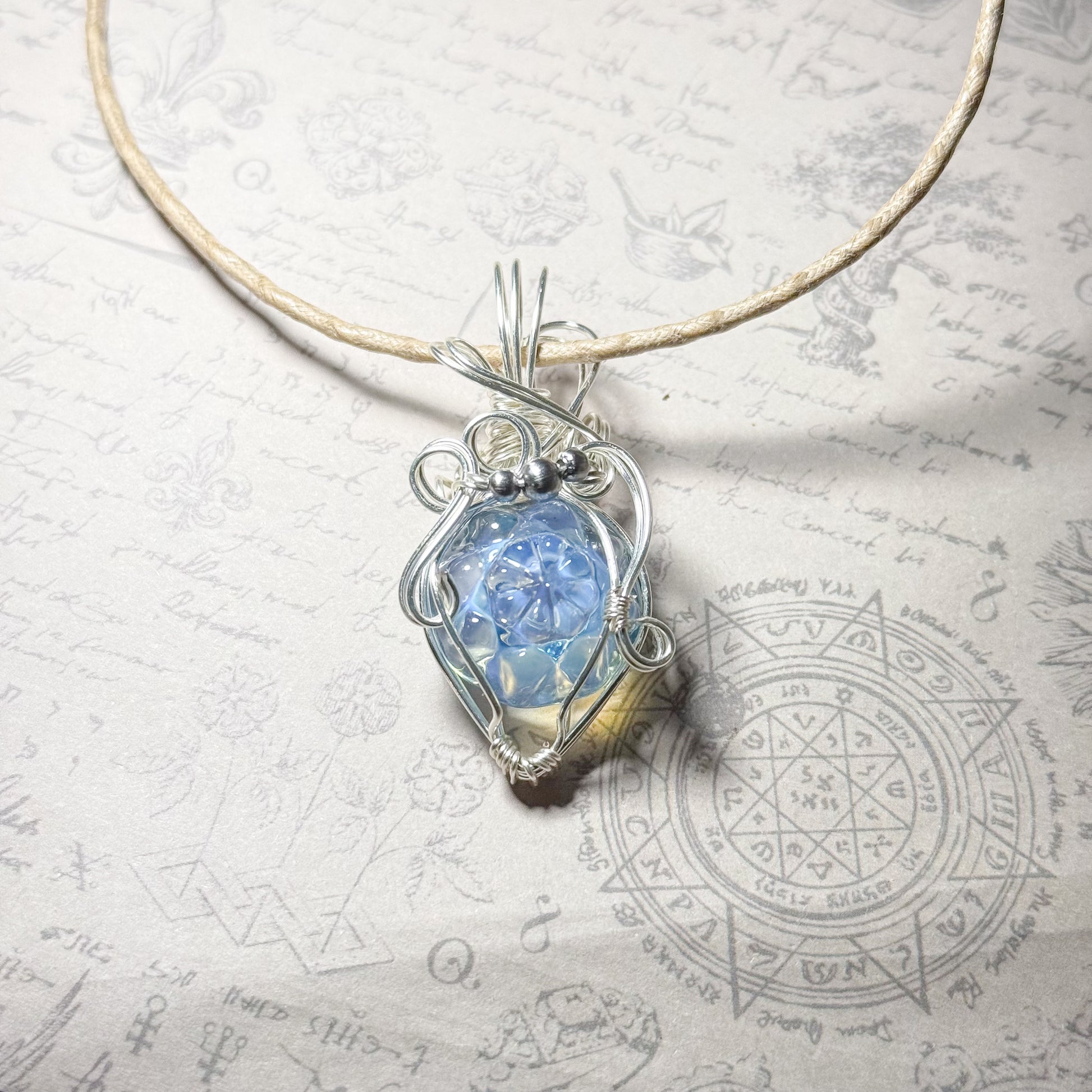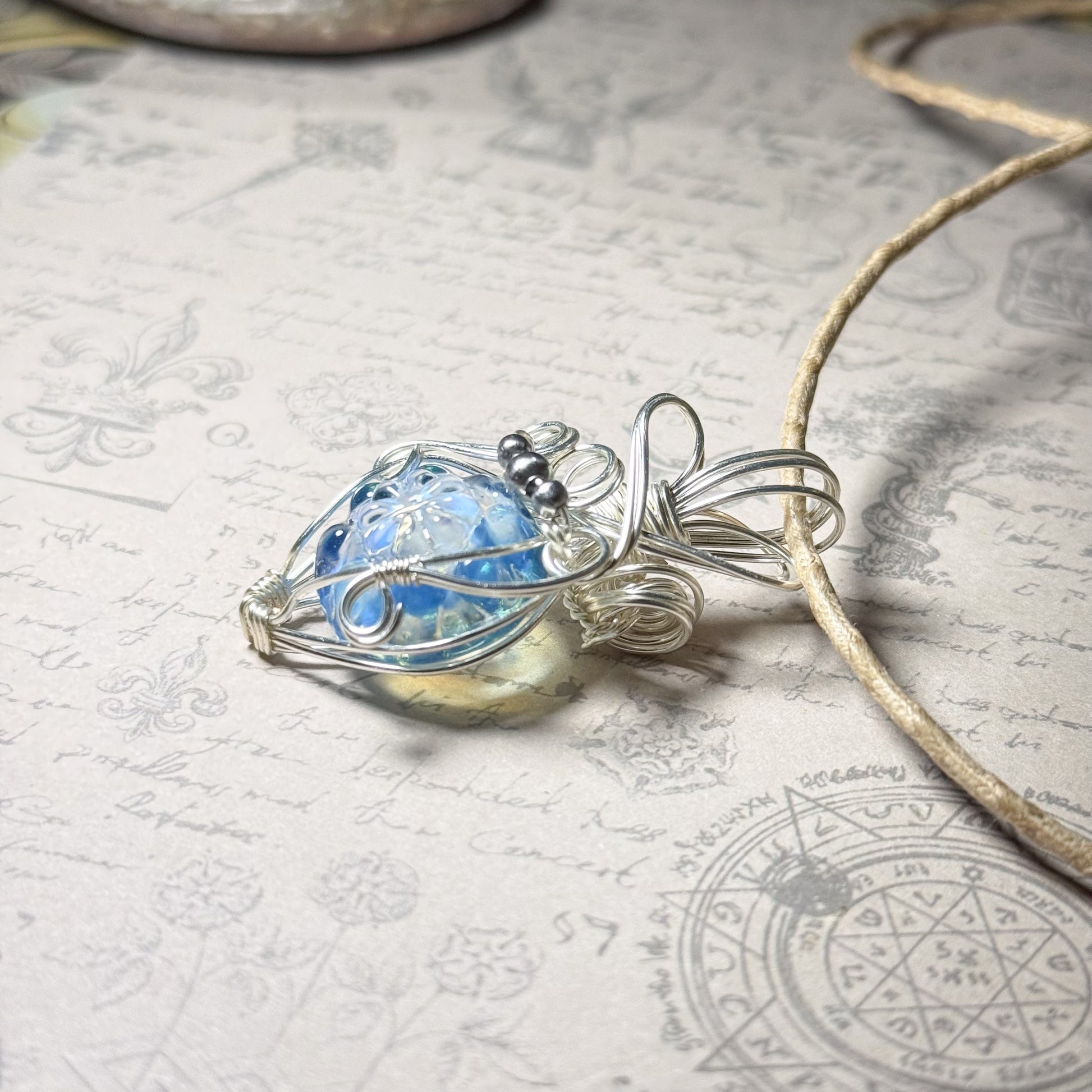 素材として:ボロシリケイトガラス、、ワックスコード、人工オパール