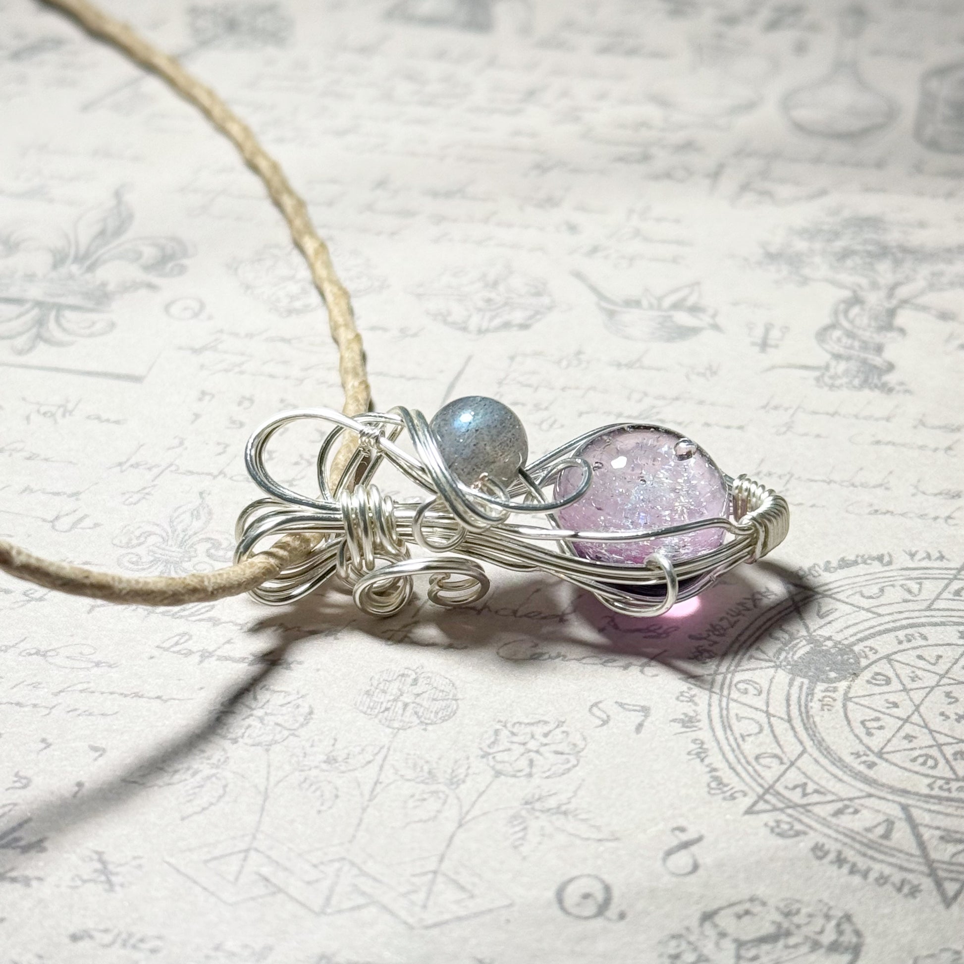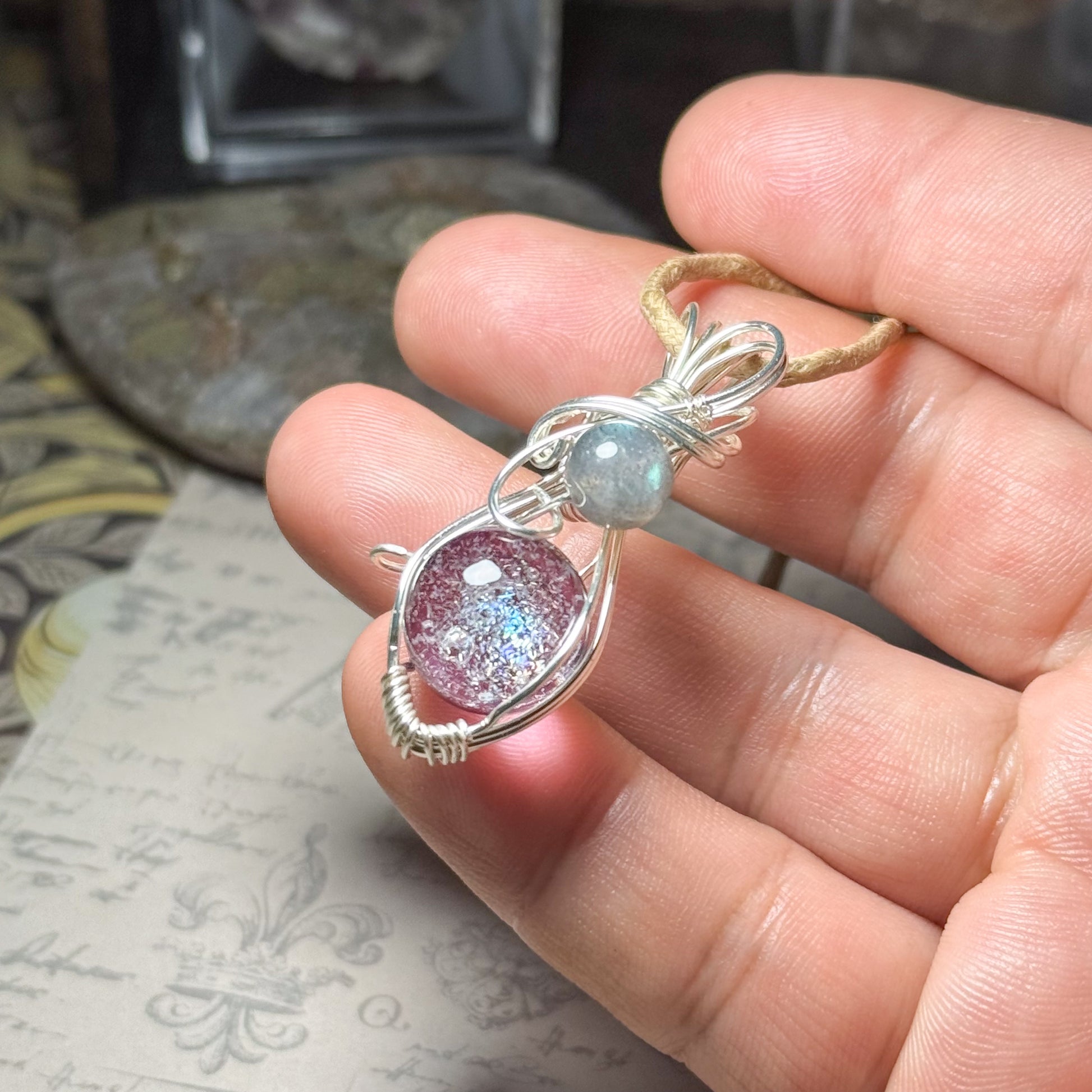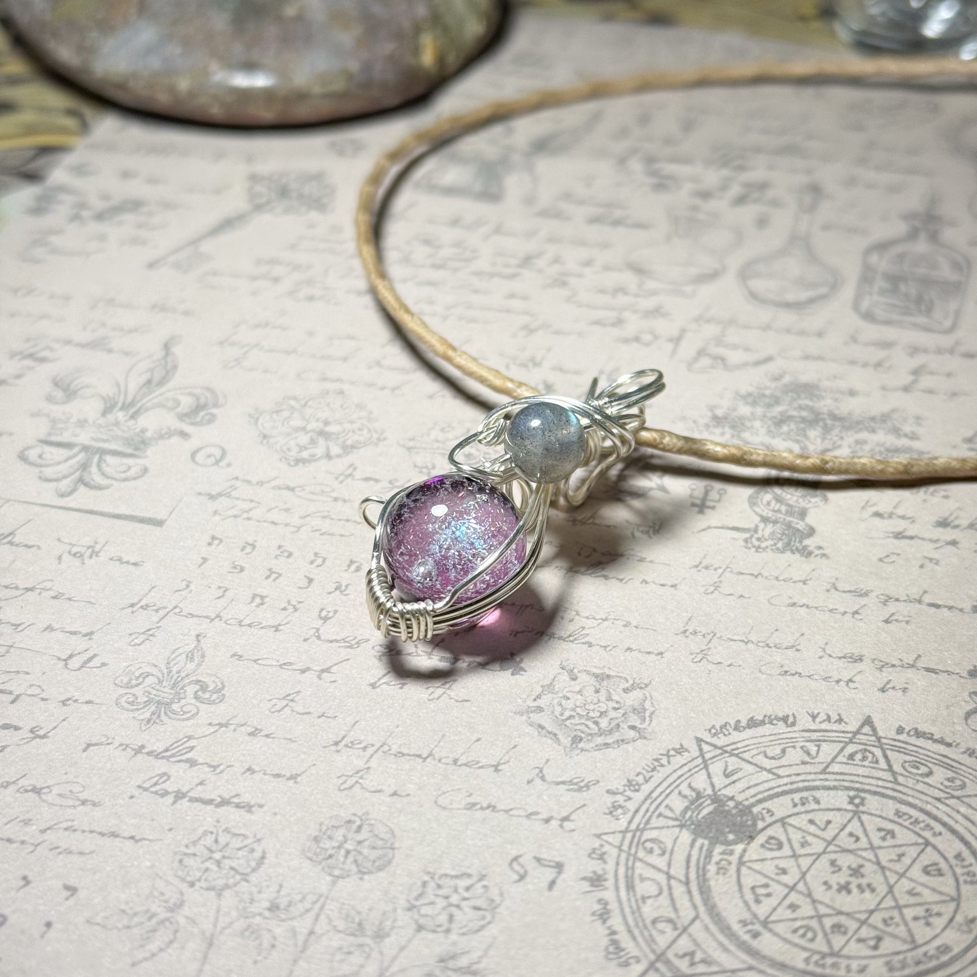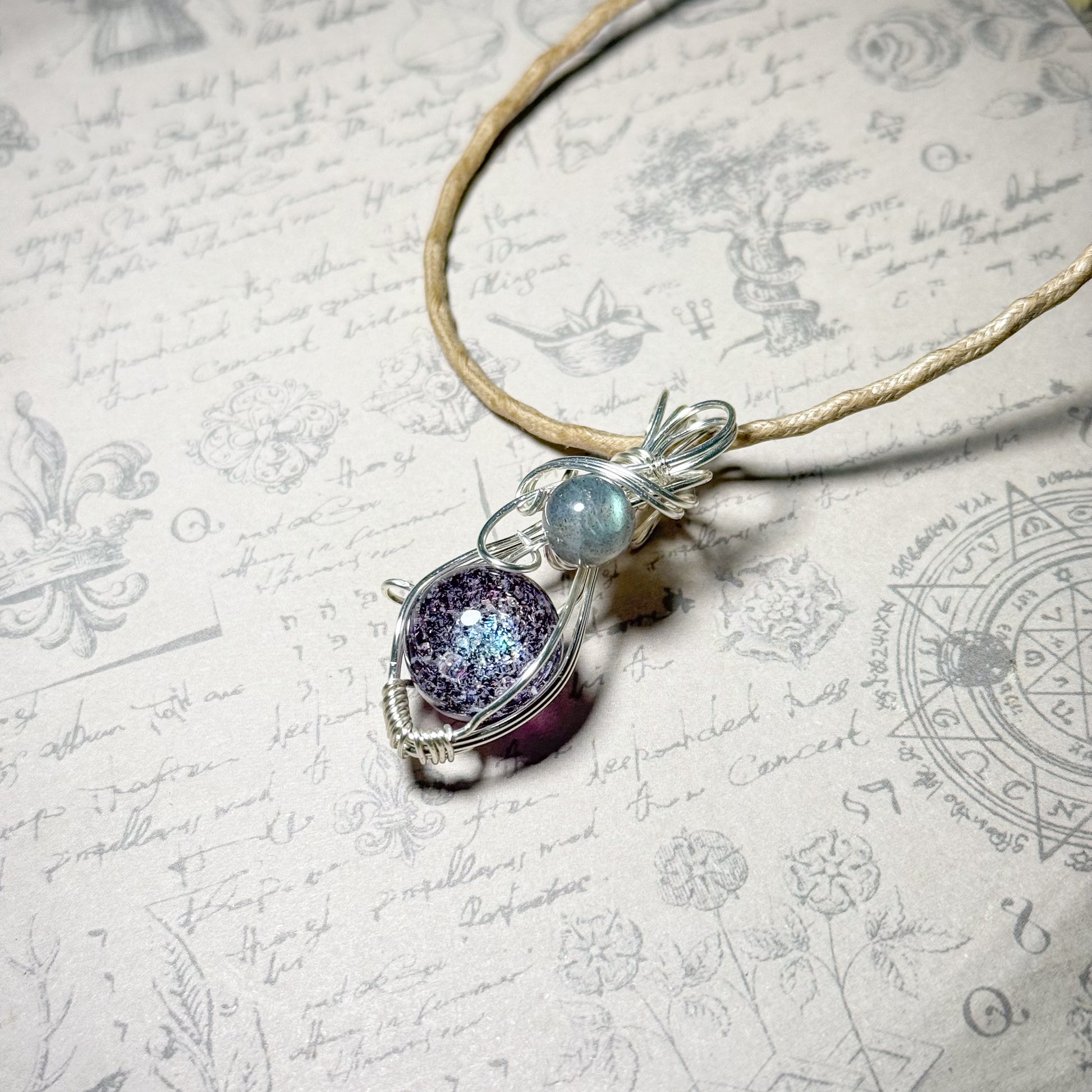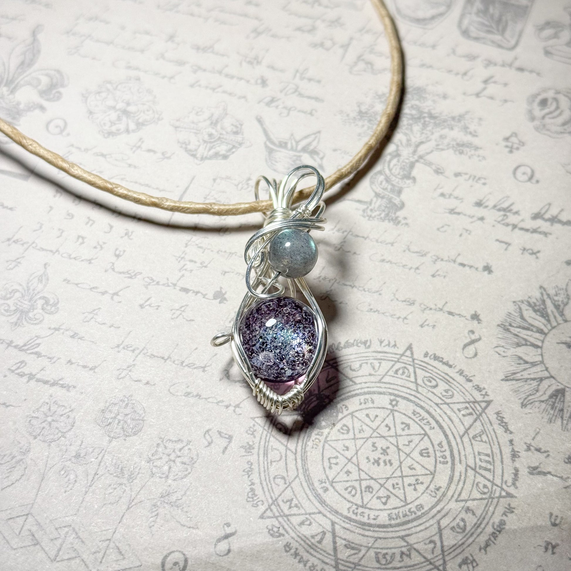 銀河の輝きとラブラドライトのワイヤーラッピングペンダント
